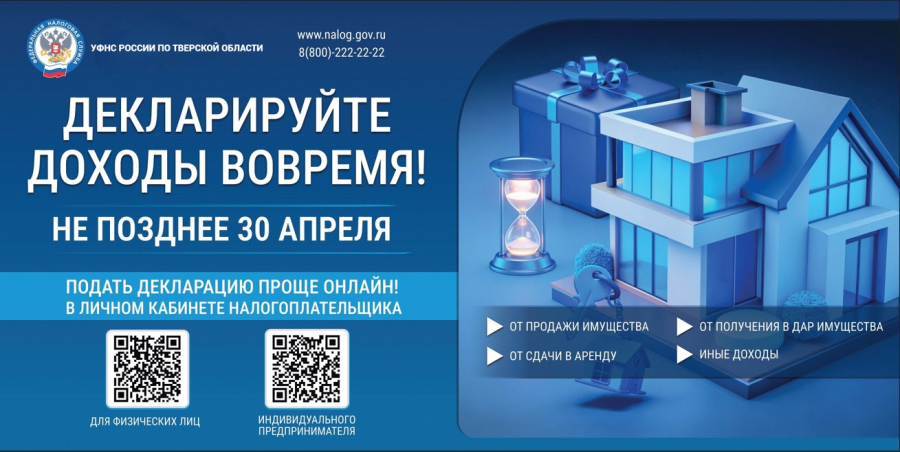 Управление Федеральной налоговой службы по Тверской области информирует граждан о проведении декларационной кампании по представлению сведений о доходах, полученных физическими лицами за 2025 год.